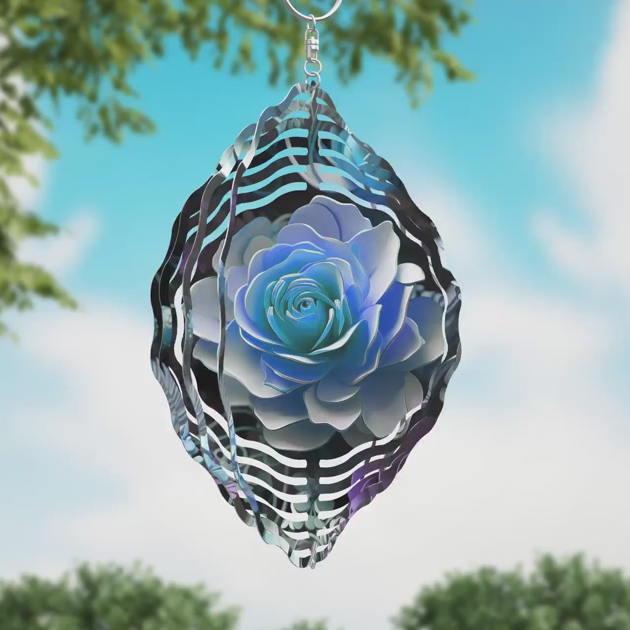 3D Blue Rose Wind Spinner Sublimation Design, PNG Download