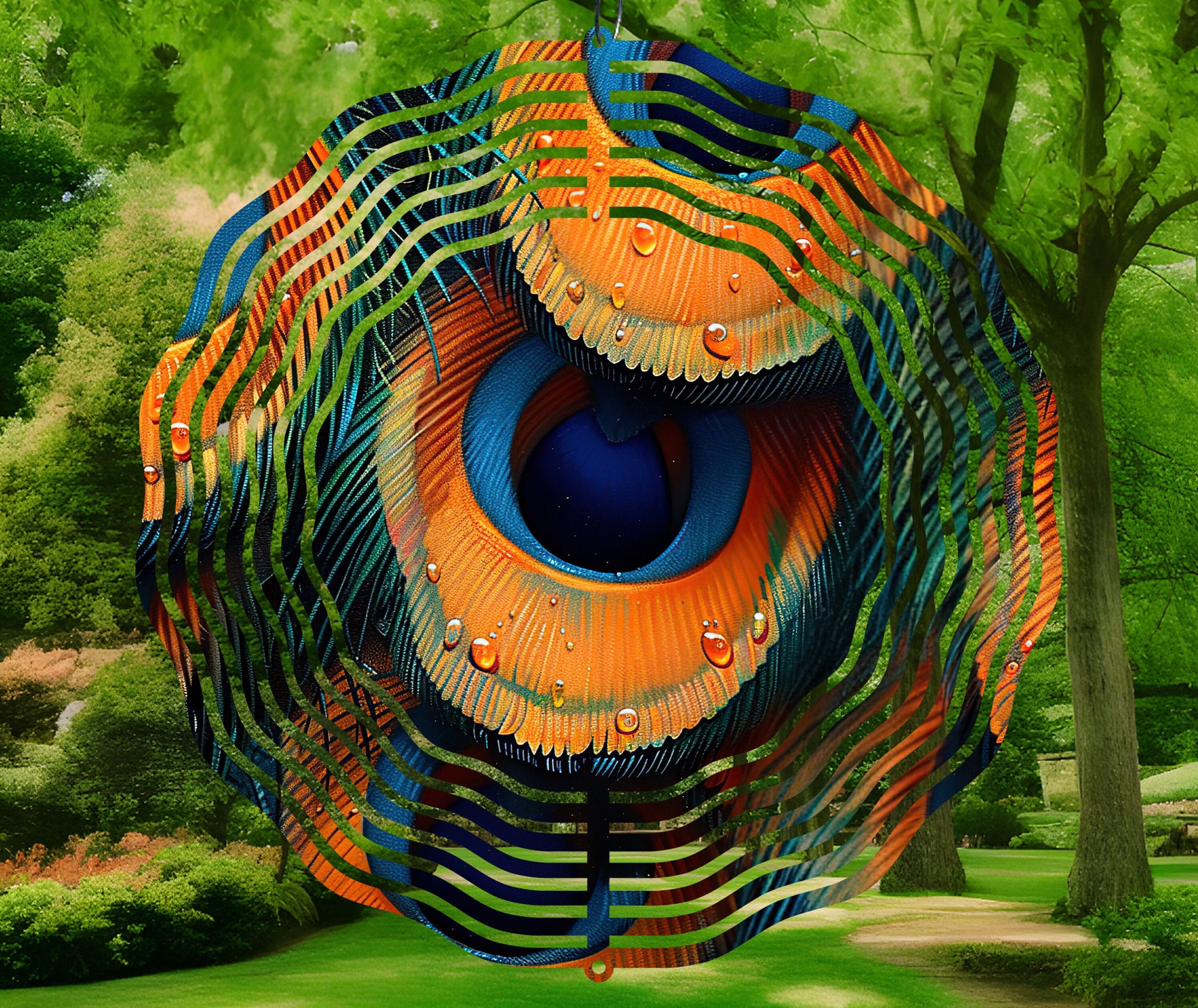 3D Peacock Feathers Wind Spinner Sublimation Design PNG