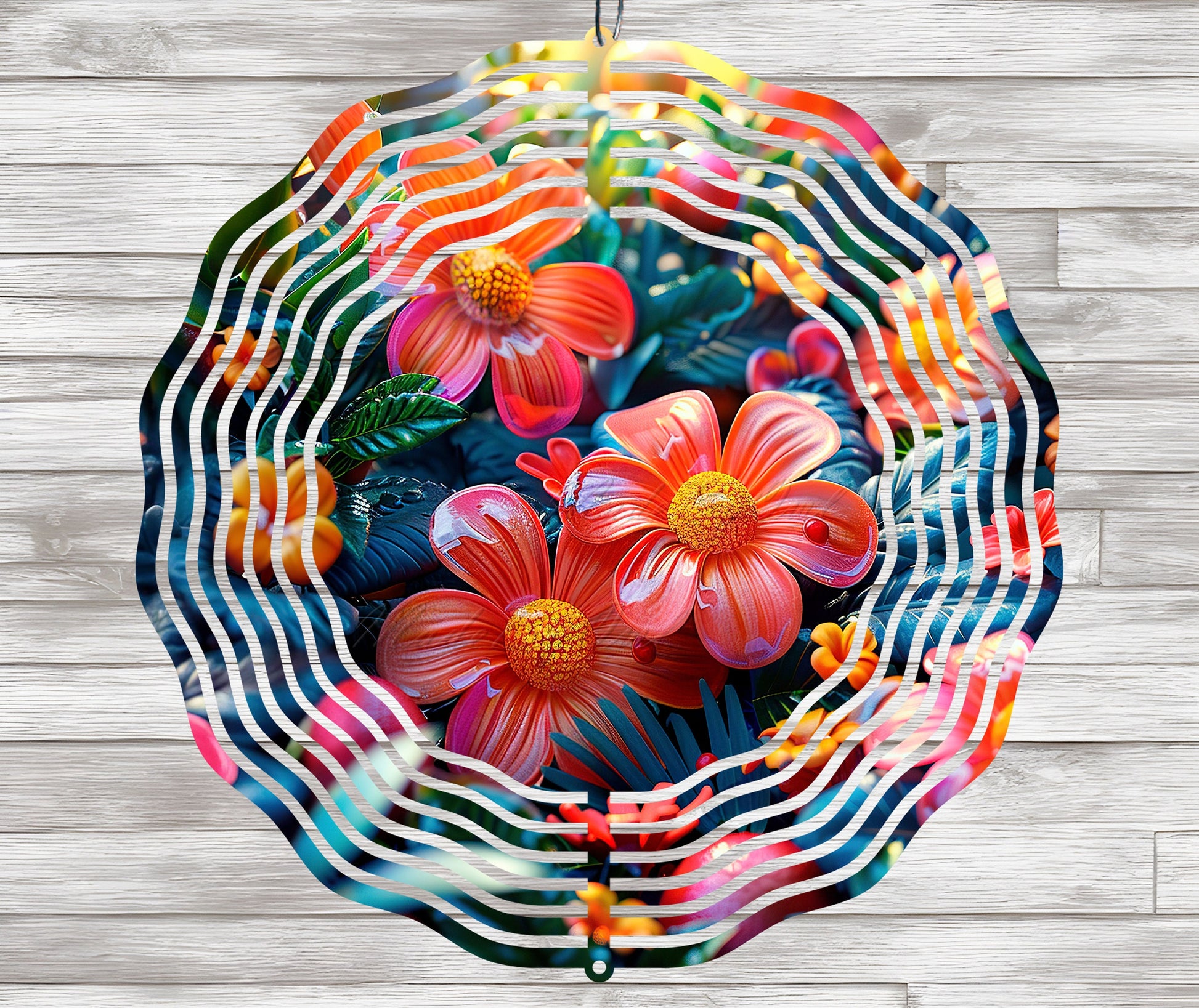 3D Tropical Flowers Wind Spinner Sublimation Design PNG