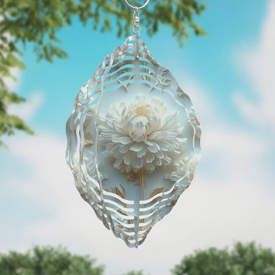 3D White Flower Wind Spinner Sublimation Design, PNG Download