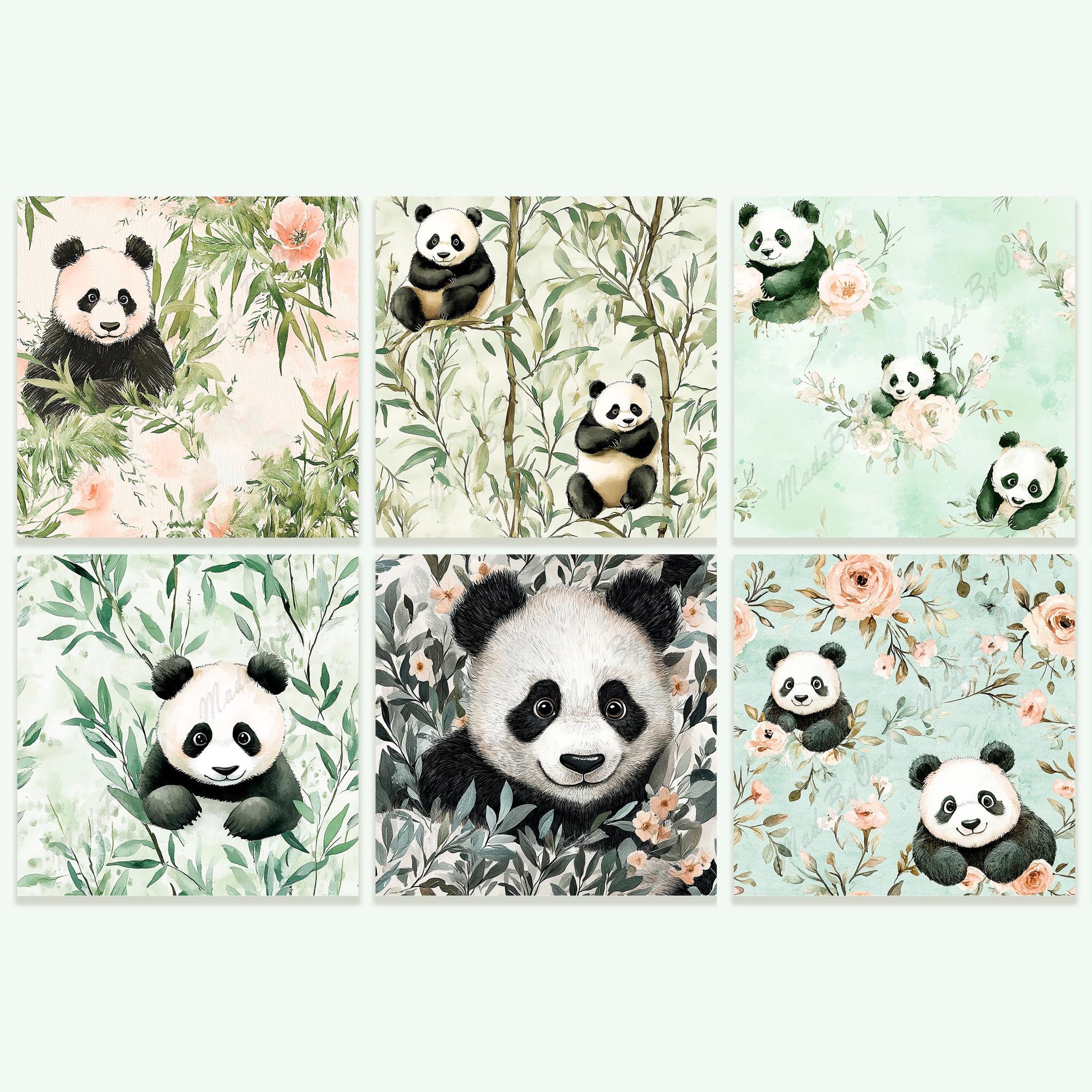 High-quality Bamboo and Panda Tileable Patterns for versatile use. Ready for both creative and commercial projects. Each image can be used as a stylish watercolor background, digital scrapbook paper, and repeatable pattern for fabric, packaging, and any other surface.