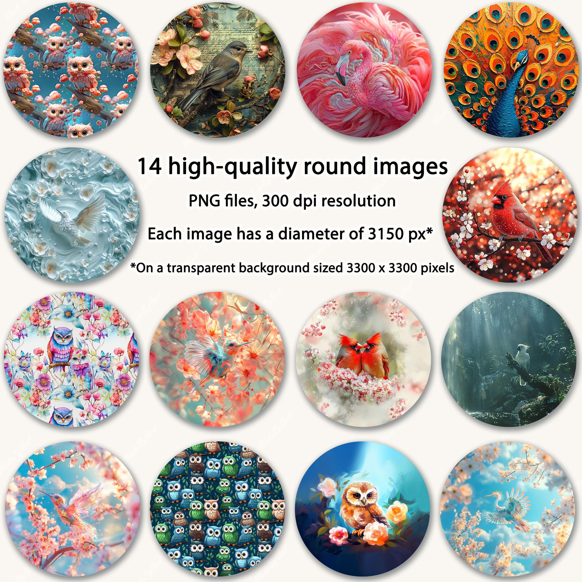- 14 round PNG images — 10.5 inches in diameter (transparent background, 3300 x 3300 px).