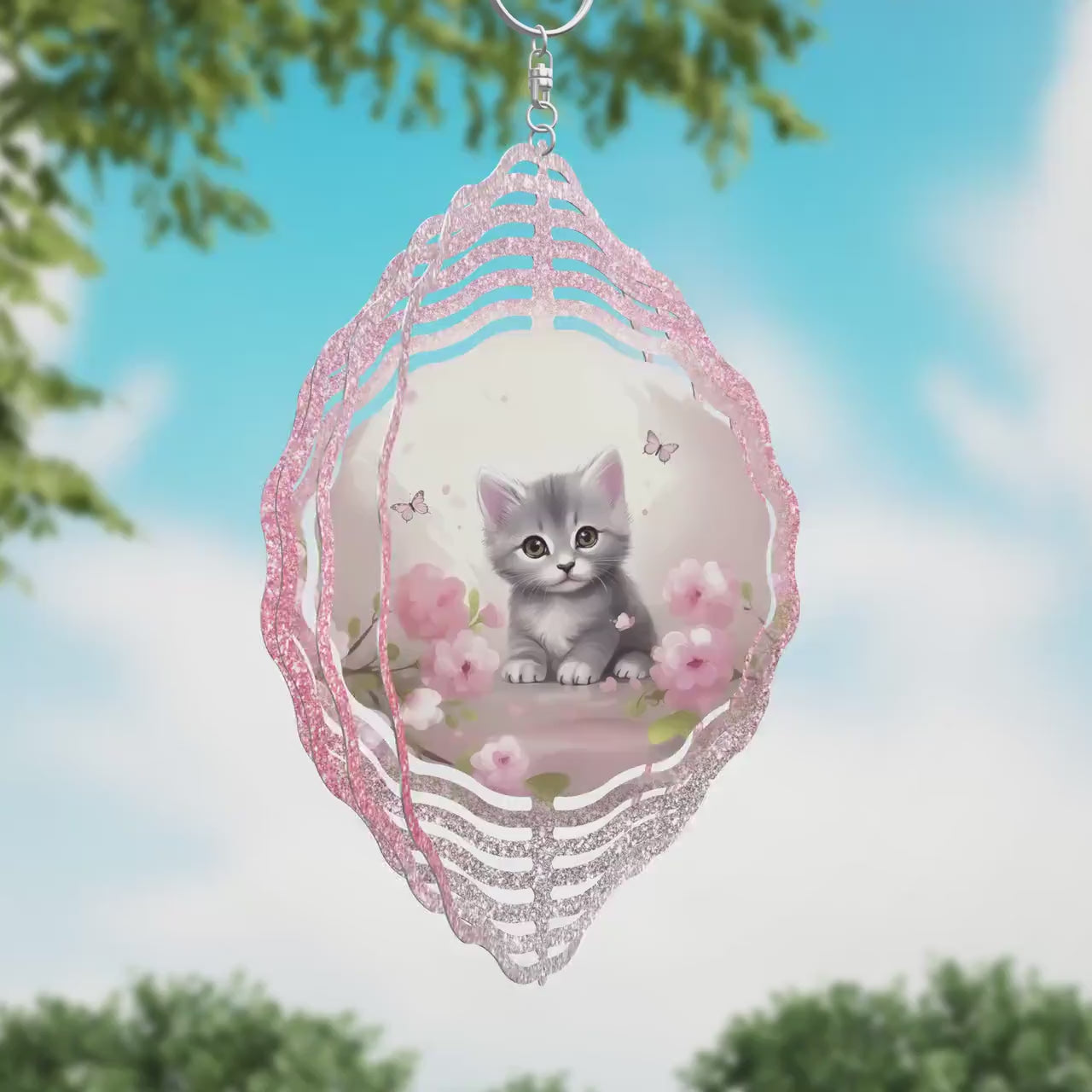 Cute Kitten with Flowers Sublimation Wind Spinner Design
