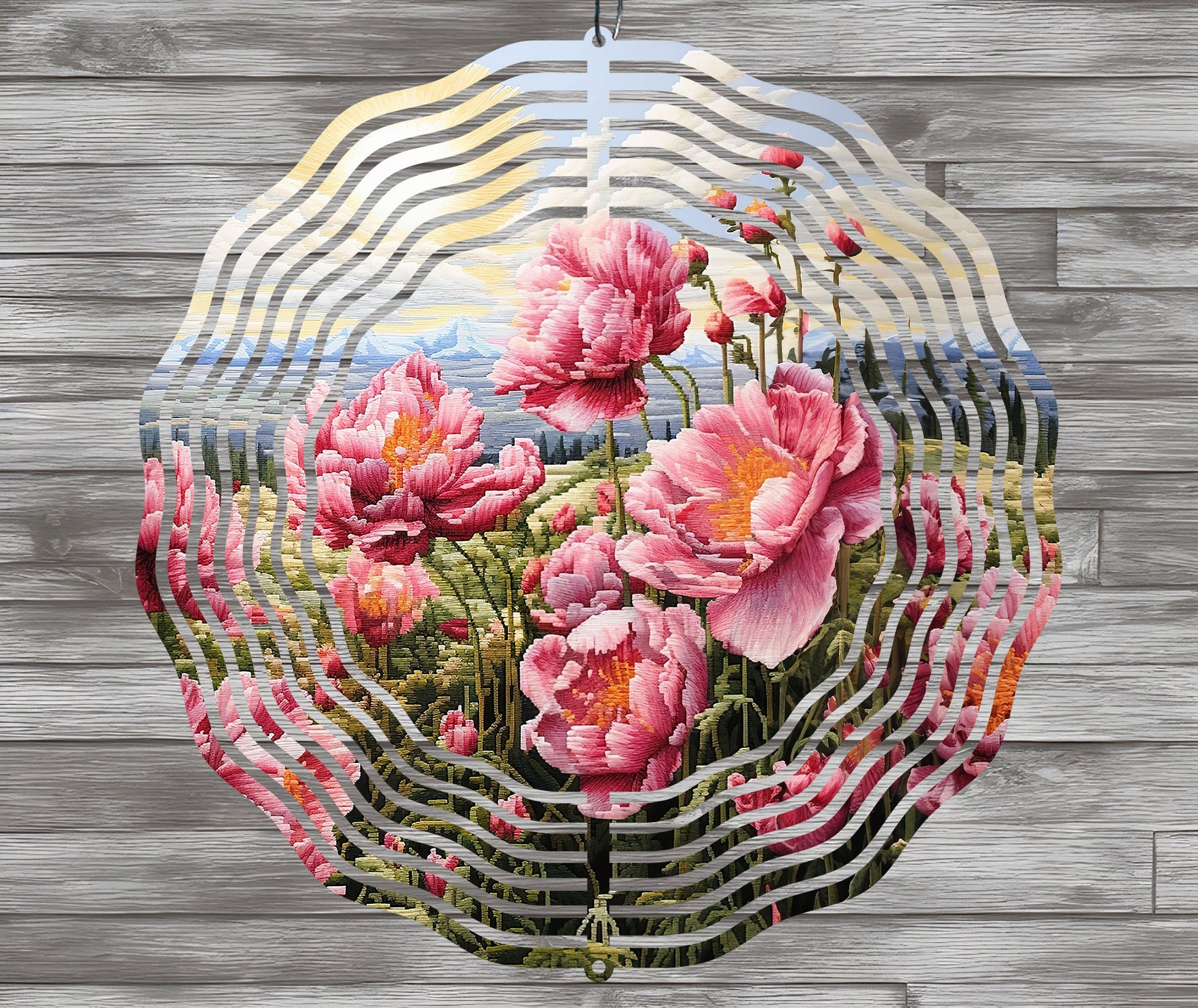 Sublimation Design: Embroidered Peonies Wind Spinner – PNG