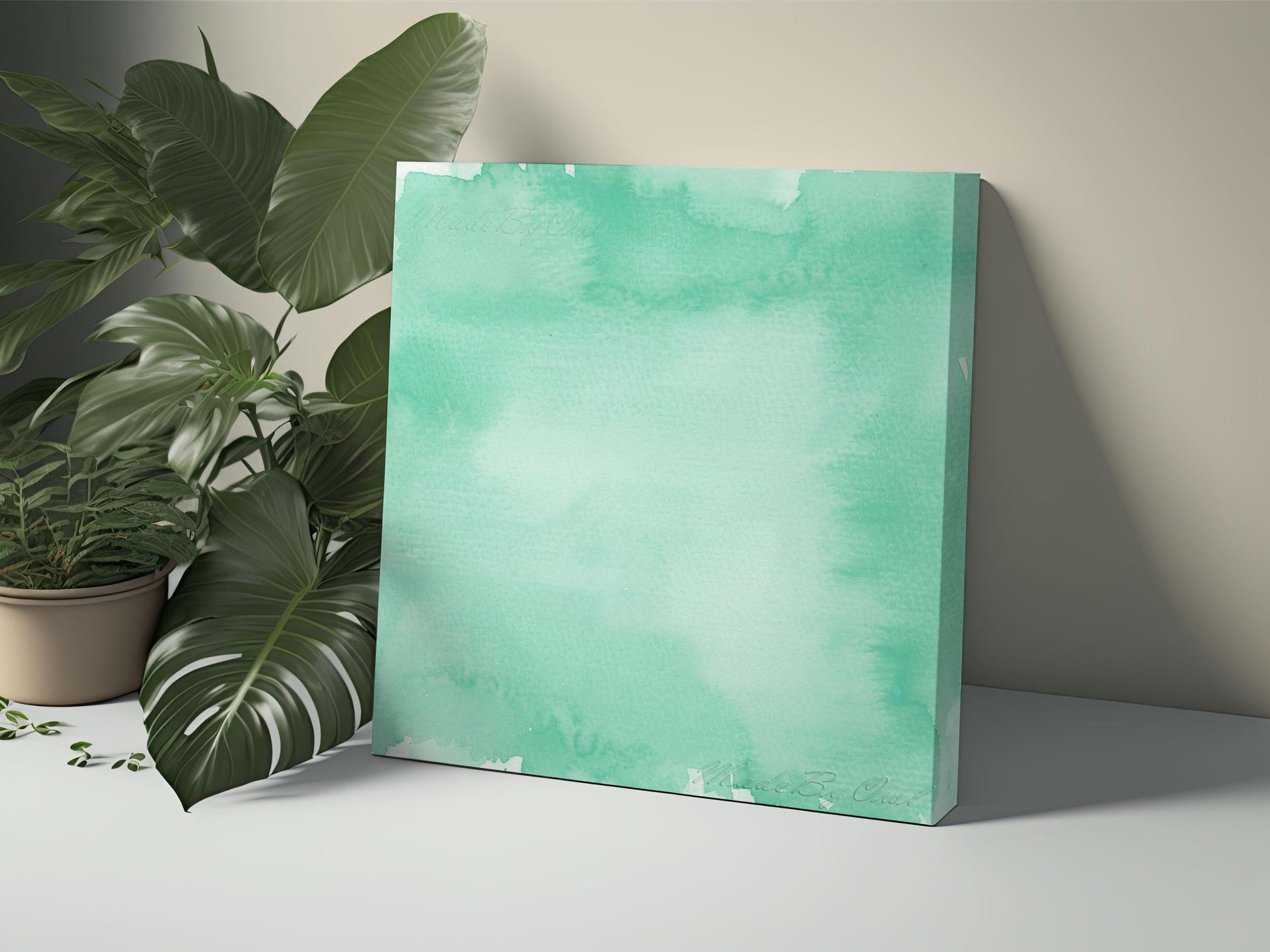 High-quality Abstract Mint Green Watercolor Background for versatile use. Can be used as a digital background, scrapbook paper, or as a decorative element for printables, cards, and other creative projects.