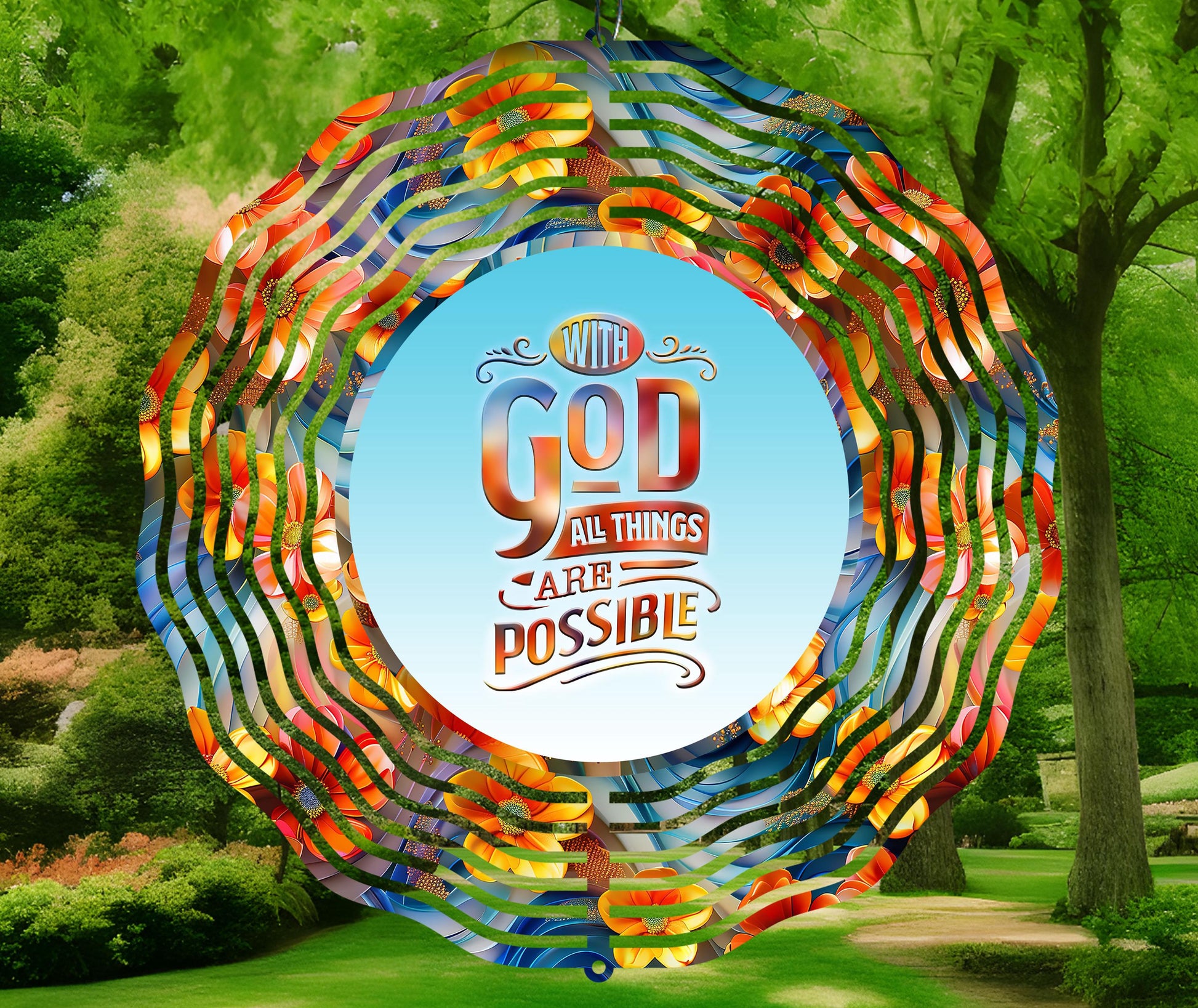 High-resolution Christian Wind Spinner Sublimation Design "With God All Things Are Possible", perfect for many creative projects. This Faith theme makes your work stand out, whether you’re creating outdoor décor, gifts, or custom items for your shop.