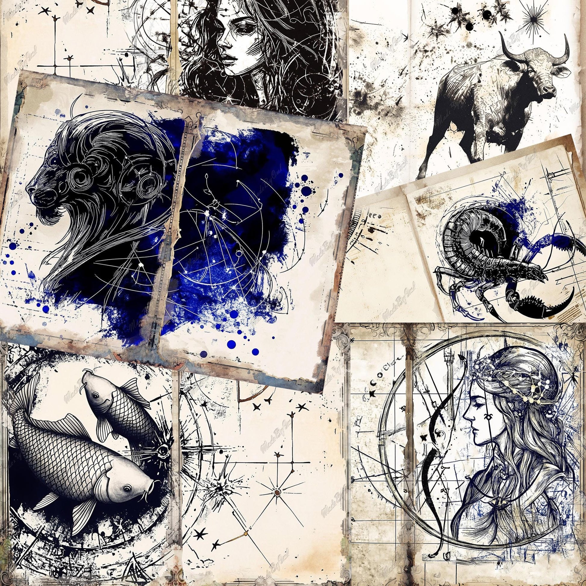 Zodiac Junk Journal Kit, Astrology Printable Ephemera